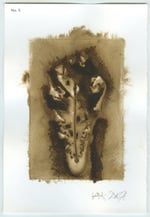 This is one of a series of individual prints from a leaf taken from one of the Beuys’ Acorns trees, created with ink extracted from wasp galls collected from the oaks.
